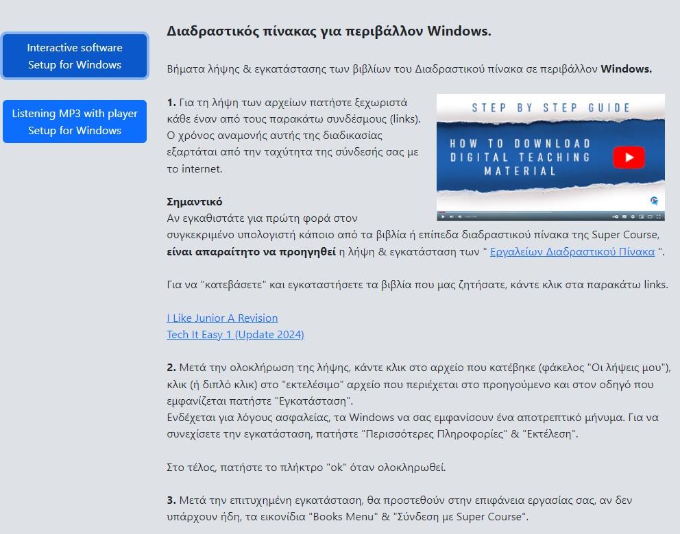 Τέλος συνεχίστε την εγκατάσταση σύμφωνα με τις οδηγίες της κάθε κατηγορίας βοηθητικού υλικού (Interactive Software, I-Book κλπ.).