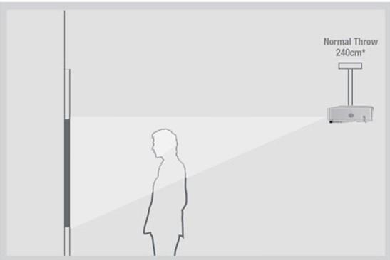 Εμπειρικά, εφόσον το ύψος του είναι όπως περιγράφεται παραπάνω, η απόσταση του βιντεοπροβολέα από τον πίνακα θα πρέπει να είναι από 220cm έως 250 cm.