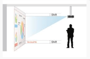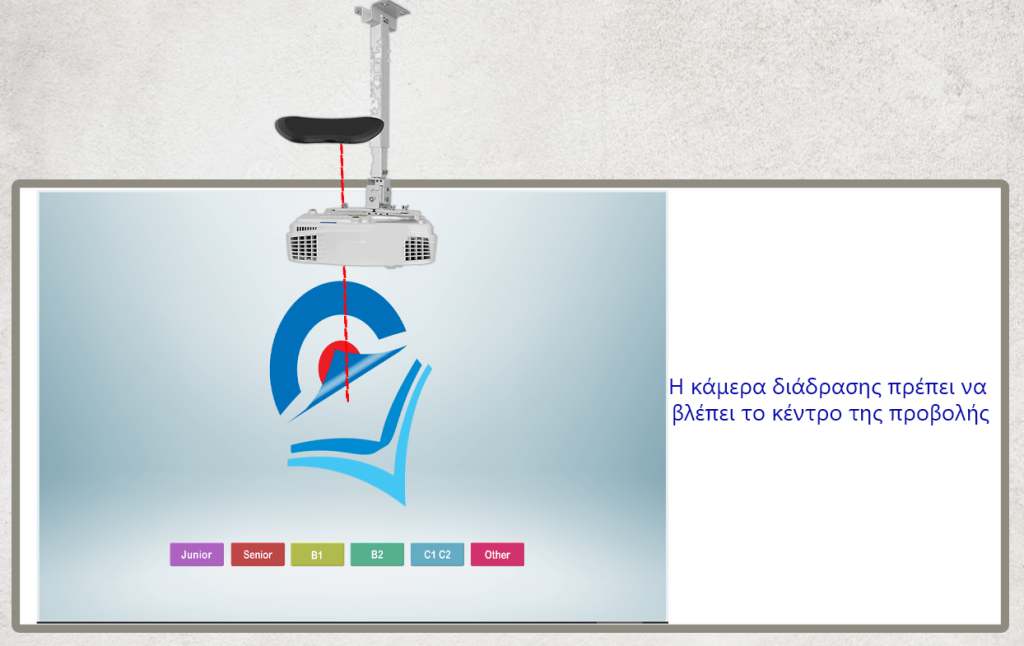 Ως προς το ύψος τοποθέτησης ιδανικά ο βιντεοπροβολέας θα πρέπει να τοποθετηθεί λίγο πιο ψηλά από το επάνω μέρος του πίνακα της αίθουσας (έως 10cm) και σε οριζόντια θέση.